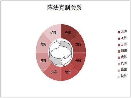 在队伍阵法里,阵法由于取自于八阵图中,八卦本就是有着相生相克的关系,所以会阵法效果也会有着相应的克制关系,具体表现在相克的阵法,优势一方的攻击效果将会增强。而且相克关系不仅仅是单一的,还分为小克制和大克制。如果是大克制的阵法之间的战斗,克制的一方将会取得巨大的优势,所以队伍阵法的选择尤为重要,也是胜负的关键。