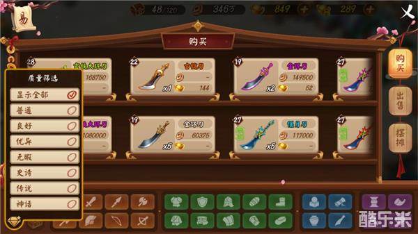 在《颤抖吧三国》中,交易行不得不说是一个能够创造奇迹与财富的地方。玩家不仅能在交易行中找寻到自己梦寐以求的神兵利器,还能将探索所得珍稀材料一销而空。为了方便玩家们找寻装备,系统还提供筛选功能,玩家可以通过对等级与品质的筛选快速找到自己想要的稀有装备和武器。