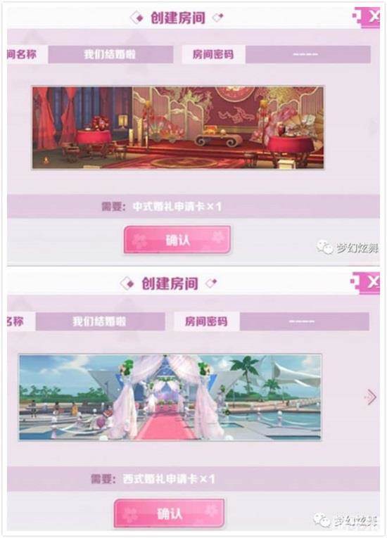 婚礼分为中式、西式两种不同风格的形式,需要消耗专属的仪式卡举办哦~