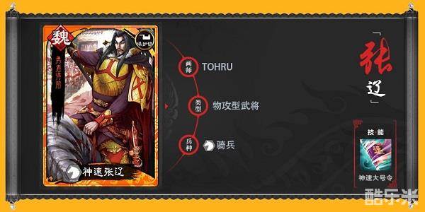 神速张辽的主动技能是对“骑兵”增益,无论是那个国家的 都能享受到增益效果!这点就决定“神速张辽”骑兵中的统帅地位,他的 神速大号令 增加伤害、命中和速度(速度是关键呀!跑起来更快,配合特技伏兵 直接突突突后排,后排死光,前排就只能等死了!)