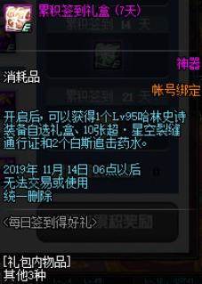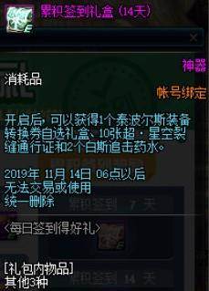 每天签到奖励:星空裂缝通行证、复活币礼盒、黎明裂缝通行证、星空深渊灵石、泰波尔斯通行证、精炼的时空石礼盒、超星空裂缝通行证。