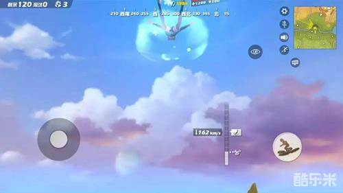对准标记的方向,将屏幕的视角调至面对天空(最大程度),左手摇杆往前推,一直往前飞就可以啦~