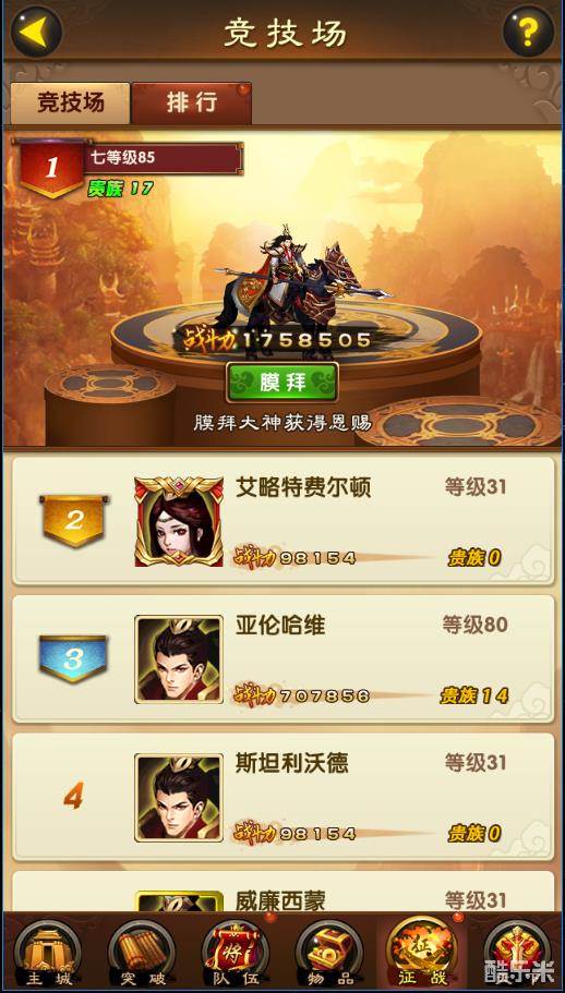 《战国争鸣》征战系统之——竞技场