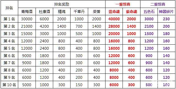 3. 活动期间累计消耗金币达到20000金币,可以额外领取一重惊喜奖励(蓝命魂,紫命魂);