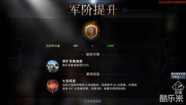 领主点击已经解锁的指挥官,可打开指挥官界面。在指挥官界面的右侧,可看到军阶提升相关信息。