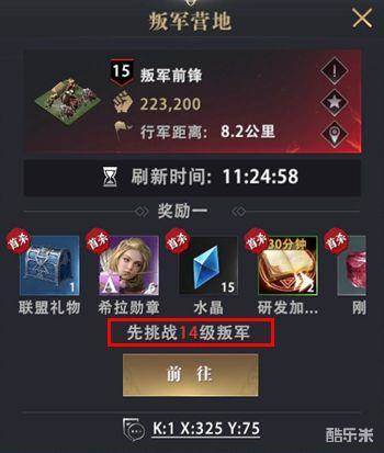 奖励介绍:在奖励介绍中,领主可查看叛军奖励。首次征伐当前等级叛军时,可获得指挥官勋章、水晶、训练加速卡等首杀奖励。完成首杀后,重复征伐同等级叛军,则只能获得领主装备材料、资源以及加速道具。