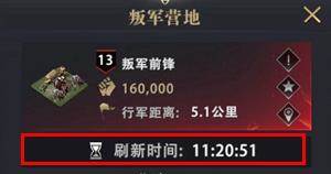 刷新倒计时:叛军每隔一段时间即会刷新。领主在征伐时,可通过叛军营地查看叛军刷新时间。