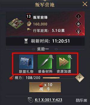 叛军信息:叛军信息板块包含了叛军的战力、行军距离,领主可根据叛军的信息判断自己是否有足够的战力击败叛军。