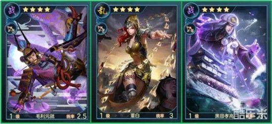 组合的防御机制主要靠控制为主,董白可以大幅增加主动技能发动几率,这让原本发动几率比较低的控制技能和组合技会变得非常稳定,在佩戴控制技能和组合技后自身就有3个50%以上发动几率的控制技能。前锋毛利元就是组合的前排肉盾,还可以治疗全体武将。进攻端由黑田孝高负责,在敌军陷入减益状态后专属技的伤害会更高,再佩戴落井下石就能打出非常高额的伤害。