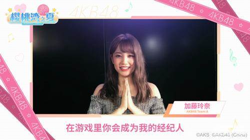 加藤玲奈本人在录制花絮的时候也表示,非常期待加入《AKB48樱桃湾之夏》,特别是因为在游戏里拥有自己的角色,相信各位经纪人一定会把她培养成一名优秀的偶像。