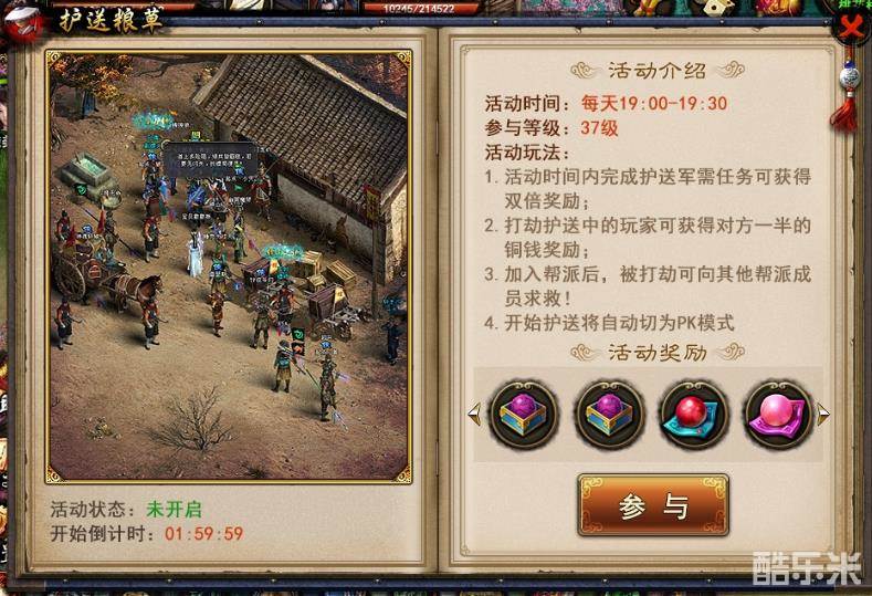 完成护送粮草任务本身可以获得一定的经验与铜钱。在特定的时间(19:00-19:30)完成任务,还可以获得双倍的经验和铜钱呢!