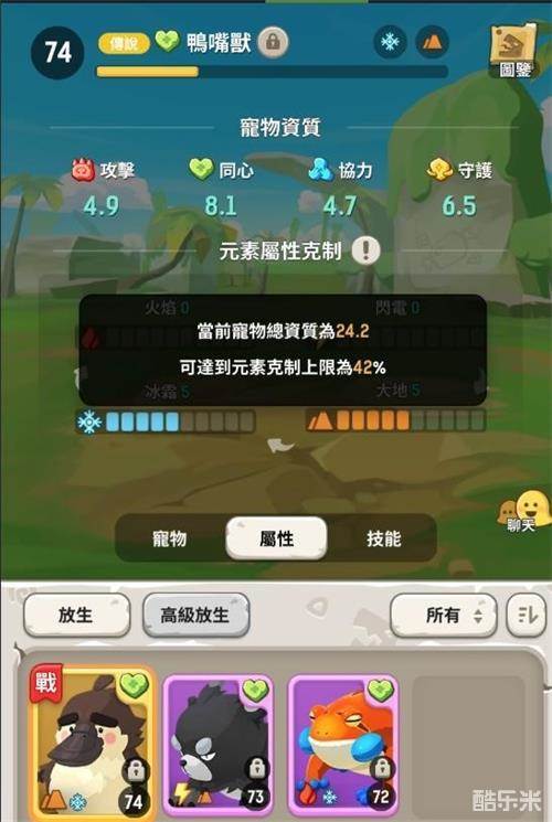 我自己是练一隻大地+冰双属五的金宠加上火属/电属各一隻紫宠