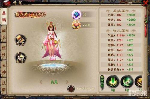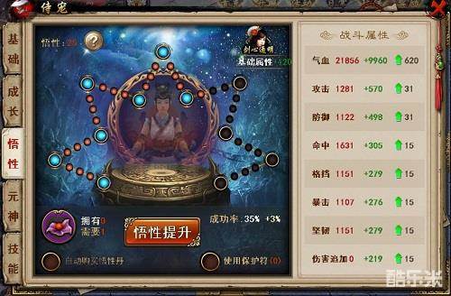 6、 侍宠悟性45级开启,每天有1次免费提升次数,提升悟性获得2级属性增长