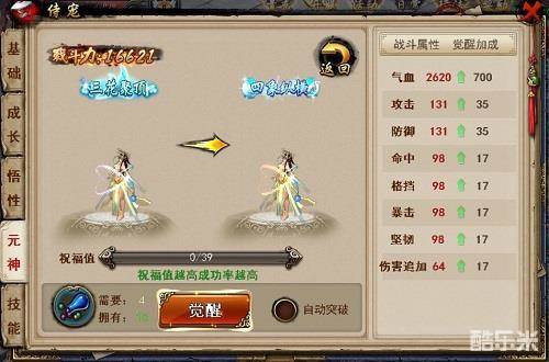 (3) 觉醒成功后可以进行下一元神修炼,获得战斗属性