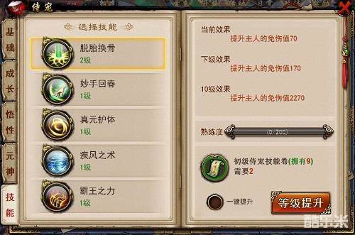 (2) 侍宠技能升级需要消耗侍宠技能卷