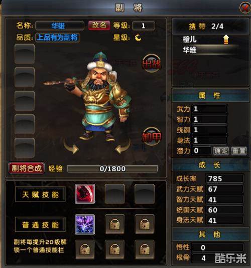 其二就是副将成长率的高低,建议按照最高的天赋来加,这样就可以让副将的属性点利用最大化,而其他的属性可以通过装备鎏金洗练来替代。而副将成长率也和它的品质挂钩,最好的评价叫做无双,如果玩家幸运的得到了该品质的副将,那么恭喜你,这绝对是整个游戏也挑不出来的极品副将!