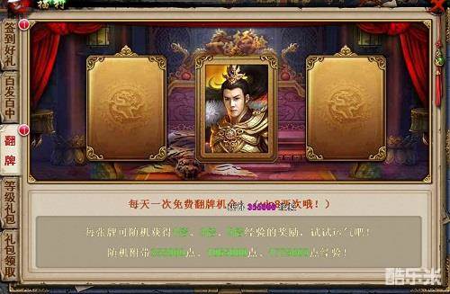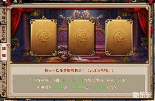 1.玩家每天有一次免费翻牌的机会,VIP8及以上可以额外翻牌一次。