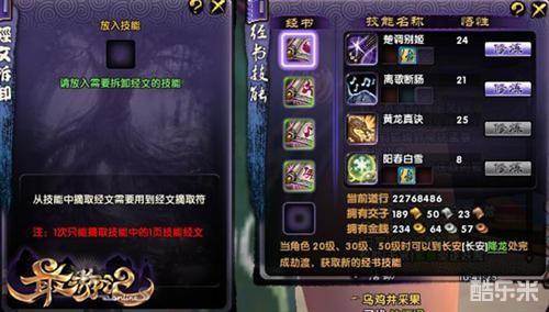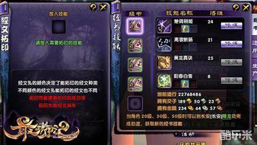 想要拓印经文可以前往长安寻找NPC“李白”,打开经文拓印界面,选取所要拓印的经文的技能,消耗大量的道行与金钱即可完成拓印操作,但要注意的是,如果拓印失败,经书也会随之消失。