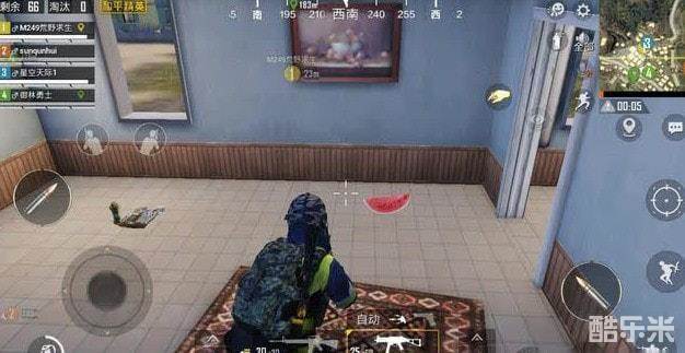 如上图所示,此时玩家在雨林地图中,左上角剩余人数还有将近70人,开局还不到10分钟,这位小伙伴的背包里已经有了6个西瓜。