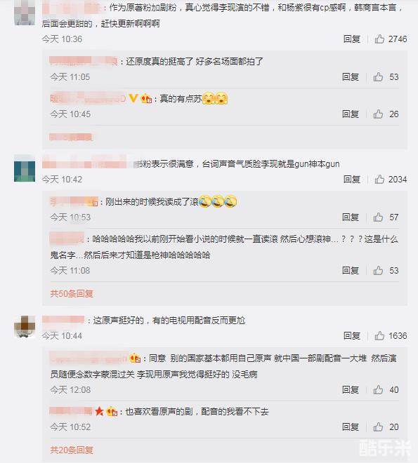 不过,大部分网友还是觉得,配音演员虽然很专业,但是老是听也听腻了,演员原声反倒很有感觉,还能锻炼演员自己的台词功底,并必要太过苛责。还有很多原著粉觉得李现的表现不错,演出了韩商言的感觉,不管台词、声音还是气质都是gun神本神。