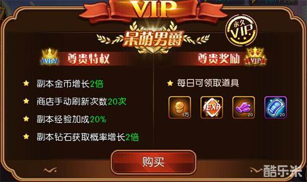 每日可领取道具:金币*25W 、顶级经验丹*3、钻石*60、扫荡卷*40