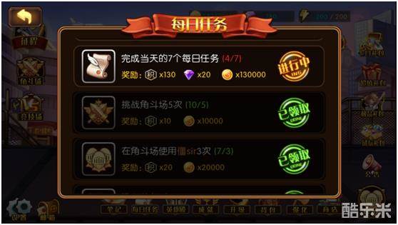完成当天的7个每日任务就可以得到一定的钻石啦。