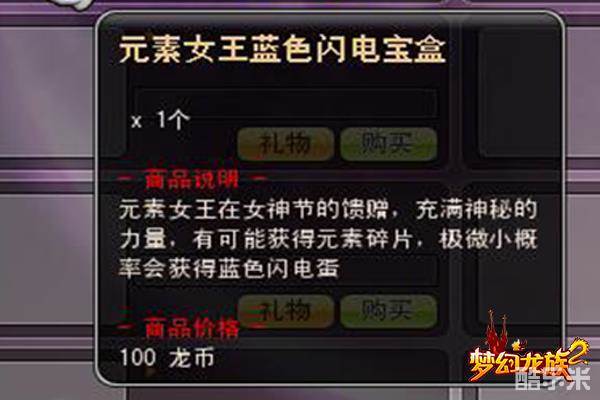 活动期间将在游戏商城中上架元素女王的宝箱,宝箱中可以开出元素碎片、精炼能力变更券、宠物能力变更券等稀有宝物,最重要的是有几率开出蓝色闪电坐骑!蓝色闪电拥有拉风的外形,实用的功能,配合宠物能力变更券更是可以培养出强力的宠物能力!绝对是PK把妹之神器!
