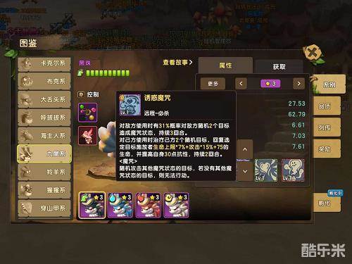 九尾的神经刀完全来自它的必杀技“诱惑魔咒”,这是一个比“混乱”更强的控制效果。混乱只能让对方敌我不分,打敌人还是打自己都有几率;但是进入魔咒状态之后,它只会攻击另一个带有魔咒效果的宠物,也就是说对面必定会发生“内战”。如此强大的效果,在恰当的时机释放完全可以一转攻势,出奇制胜!