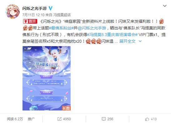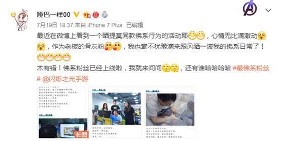 最后编辑于6年前佛系粉丝被迫营业,不只震撼了新浪超话榜,还震撼了《闪烁之光》!携手“佛系队长”冯提莫,《闪烁之光》开启“最佛系粉丝”征集活动以来,闪妹算是见识到了粉丝们真正的力量,佛系粉丝军团就这样浩浩荡荡地霸屏闪烁官博数10天,回想起来依旧令人激动不已。