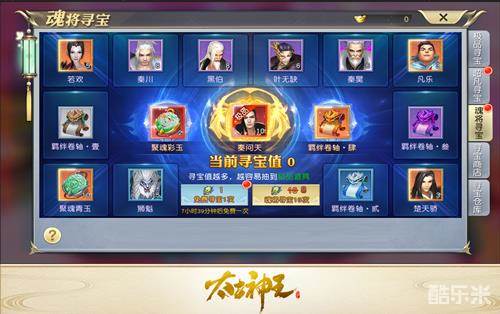 魂将解锁与培养升阶都需要一定数量的魂将碎片,魂将碎片可以通过魂将寻宝获得。在魂将寻宝中玩家还可能获得羁绊卷轴、聚魂彩玉等道具,使用聚魂青玉或聚魂彩玉可以合成指定角色碎片。玩家每天都可以进行一次免费的魂将寻宝,当然你也可以消耗元宝获得更多次数,快来挑个黄道吉日将最强神王秦问天带回家吧!