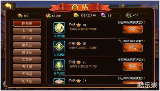在商店购买材料也是有一个小技巧,每天购买的数量有限,如果你有很多的决斗币,你可以把各种星座材料的购买次数都用完,等到需要升级改星座的时候就非常方便啦~