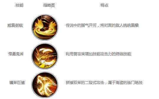经历过占城抗争外敌的所有重大战役,占城领袖杰斯的左膀右臂,是迄今为止占城军队中年龄最大的勇士。海盗布德所用的武器是两把可拼接的斧头,技能主要伤害是通过多次普攻伤害后使用第二技能悍勇鬼斧来完成对敌人的主要伤害,技能较为偏向于使用技术,所以操作难度较高。