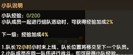 每支小队都拥有自己的队伍等级,当一支队伍里有两名同一小队的成员一同战斗时,就会获得小队经验,小队成员越多,那么能够获得的小队经验就越多。组队最显而易见的就是经验加成。小队等级越高,给玩家自身带来的经验加成也就越高,升级都能快人一步。而且据说到后期小队还能给玩家增加属性哦!