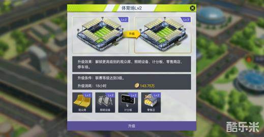体育场升级后,可以解锁更高级别的观众席、照明设备、计分板、零售商店和停车场哦!如果后续升级停车场,不要忘记先升级体育场。