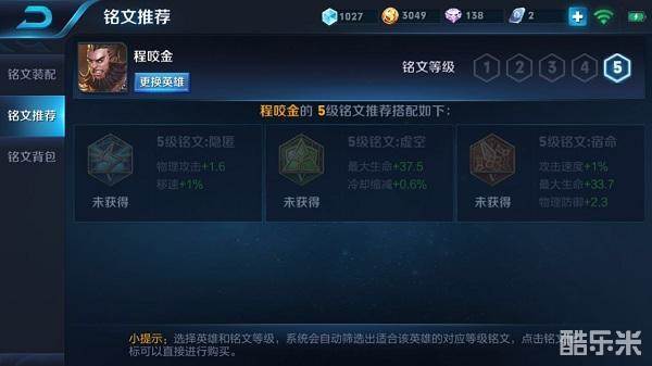 分析:该套铭文除了强化程咬金的抗打击能力外,也适当强化了程咬金的输出能力。总的来说,在没有精力配齐五级铭文之前可以考虑先用四级铭文替代。