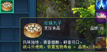 技能等级25—29级,消耗25点精力,可产出珍珠丸子