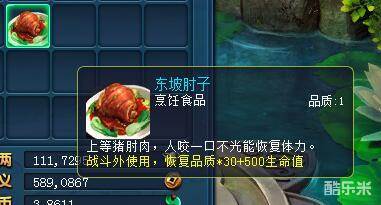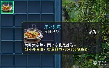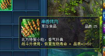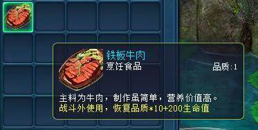 技能等级1—24级,消耗20点精力,可产出铁板牛肉、串香烤肉东北乱炖、玉米香饼、东坡肘子