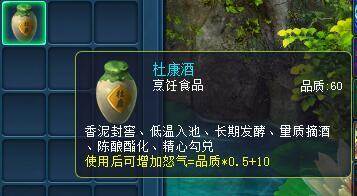 技能等级50—54级,消耗50点精力,可产出杜康酒
