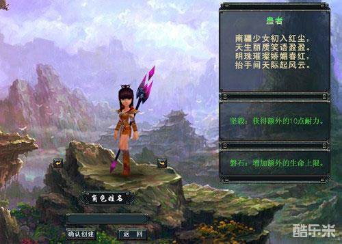 蛊者是位Q味十足,外形可爱,清新的女子形象。但千万别被她的外形所欺骗,蛊者拥有对水火风土等自然力量的操控。远距离攻击敌人的爆发性输出职业,但防御力的血量极低。所以选择蛊者的玩家要尽量与敌人保持距离。可以这样说如果技巧熟练度高的玩家,那么你将是其他职业都非常惧怕的对手。
