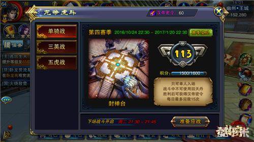 第四季龙争虎斗正在进行时……勇士们斗智斗勇各展其能,战况异常激烈。在最新的更新中,龙争虎斗活动奖励正式公布,单骑战第一名奖励新宠物“开膛手杰克”, 三英战前三名奖励坐骑“噬焰”, 五虎战前五名奖励全新翅膀“血龙”……多种别致奖励,还有半个月时间,勇士们奋起杀敌,为了胜利与荣誉而战斗吧!