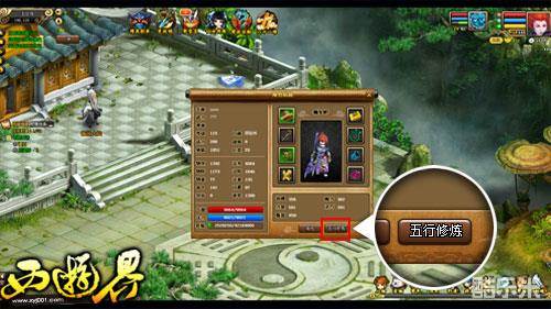 2. 打开人物界面,点击“五行修炼”按钮进入五行修炼界面。