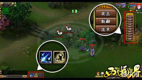 2. 游戏界面下边有技能快捷栏,可快速点击快捷键使用技能。