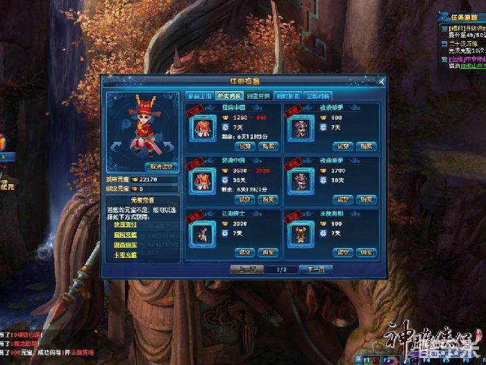 《神雕侠侣》凭借Valhalla引擎的强大机能,以及3D技术的广泛应用,首创2D回合游戏Avatar系统(虚拟形象)的全面应用,让玩家能够随心所欲换上自己喜欢的各种精美时装。只要点击屏幕左上角的“衣”字按钮就能随时打开“时装店”,如果你看中了一件时装,利用试穿功能可以马上看到穿上后的样子,适不适合自己一目了然,绝不会出现网购时被广告忽悠的坑爹现象。