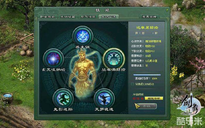 进入《剑舞》的武侠世界,玩家达到一定等级之后即可开始心法的修炼之路,初期只能学习养生诀,但并随着角色的不断成长,玩家将逐渐接触到更高级的心法,直到最后同时掌握全部五种神功。心法有层次之分,需要玩家不断升级心法的层次境界,层次越高威力自然越大。当然在这个过程中,每提高一种心法的层次,玩家将获得不同的实力增长。