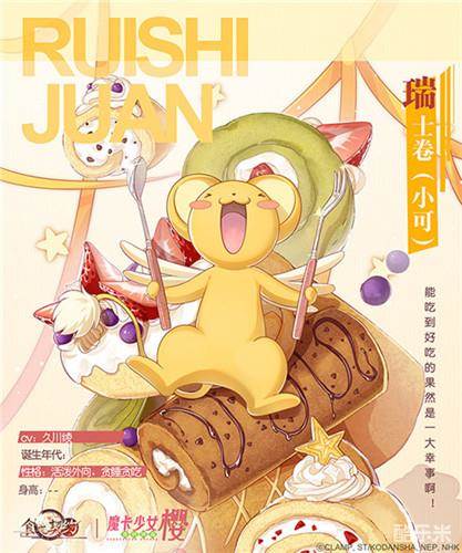 除了主角小樱外,身为小樱战斗时重要帮手,库洛牌的封印之兽——小可也将化身UR飨灵-瑞士卷,在《食之契约》中继续协助小樱战斗。小可虽然贪玩、贪吃,但总能在关键时刻帮助小樱,想必在游戏中,他们也会是一对要好的搭档。不过作为吃货的小可,会不会把飨灵召唤时出现的瑞士卷吃掉呢?还真是让人担心啊……