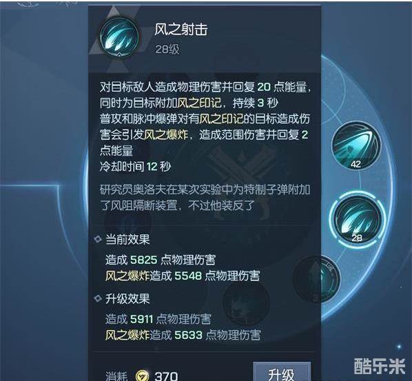 风之射击:对目标敌人造成物理伤害并回复能量,同时注入风之印记。三秒内再对敌人攻击时会触发范围爆炸的追加伤害。在战斗时推荐先手使用风之射击,普攻和脉冲爆弹会对风之印记的目标造成额外伤害并回复能量。
