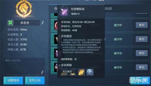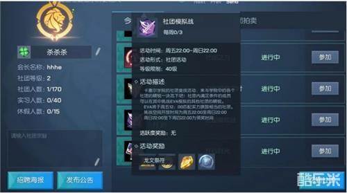 社团模拟战是卡塞尔学院的社团竞技活动,这个活动给玩家提供了与其他社团精锐相互PK的机会。在玩家等级达到40级的时候就能够参与社团模拟战。需要注意的是,加入社团小于2天的成员、实习生和休假成员都是无法参与此活动的。