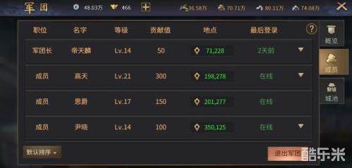 5.军团成员的军团贡献达到一定的值后,将自动升职,如有多名成员的军团贡献达到升职要求,则职位分配按照军团贡献由高到低依次分配(军团长和副军团长不参与排名)。