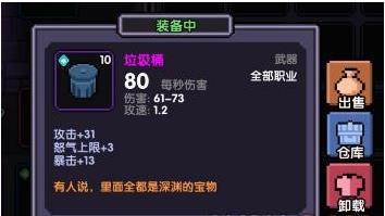 第三件就是真吴克神器,垃圾桶,这件就得看运气了,毕竟是紫装。亡灵城堡的关底boss科学怪人出,具体从第几层开始有不知道了。我也只刷了一个,同样最好有命中回复。当然前两件都有命中回复了,这个时候应该有+4的命中回复,没有出命中回复问题也不大。