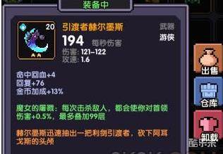 武器首选攻速快或攻击频率高的,这里直接放我用的三款,其他的我没有深入尝试,就不乱讲了。关于引渡者,这把武器说实话并不好,看起来很棒,实际上攒怒气的速度根本跟不上使用速度,我唯一看中的就是它的被动,打BOSS时很舒服。而魔神之眼附带穿透,甚至可以穿墙,加上本身伤害也很可观,所以很厉害的。死神镰刀就不说了。